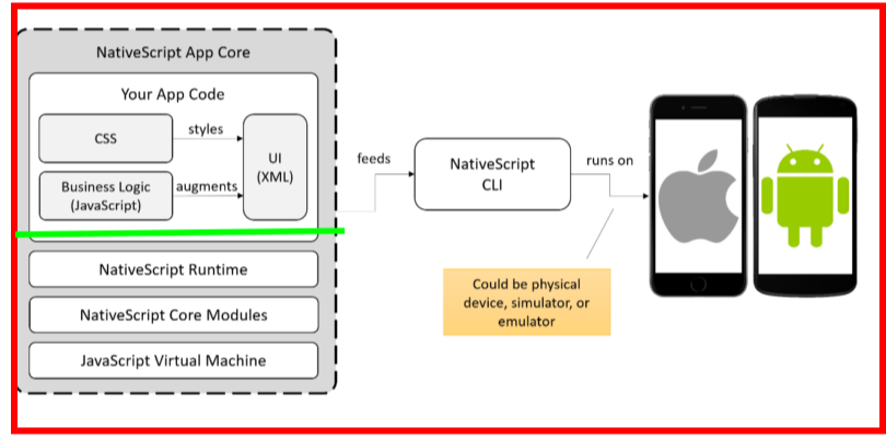 Ns run on the virtual machine. it is an kind of JIT Compiled mobile framework.